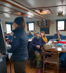 As we sail from place to place, we sketch the view from the deck, help sail the ship, relax in the saloon, or simply look at the view and breathe.